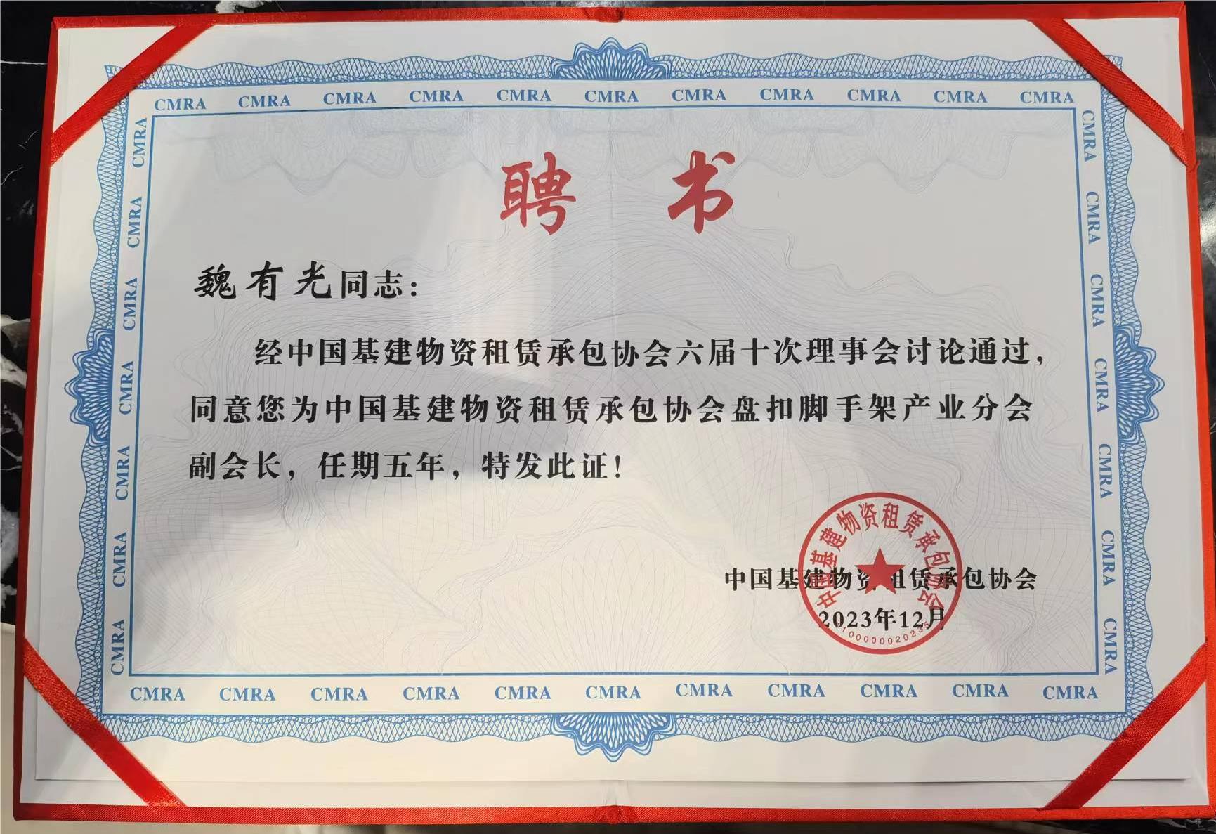 2026魏总受聘中基协盘扣脚手架产业分会副会长